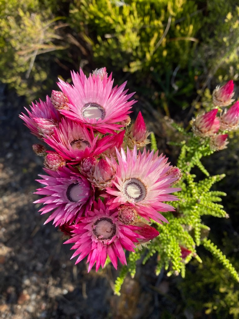 Speaking of which. These are Phaenocoma prolifera. Or Pink Everlasting in the parochial parlance. Spring has warp-jumped into summer here but there’s always something flowering in the local biome.